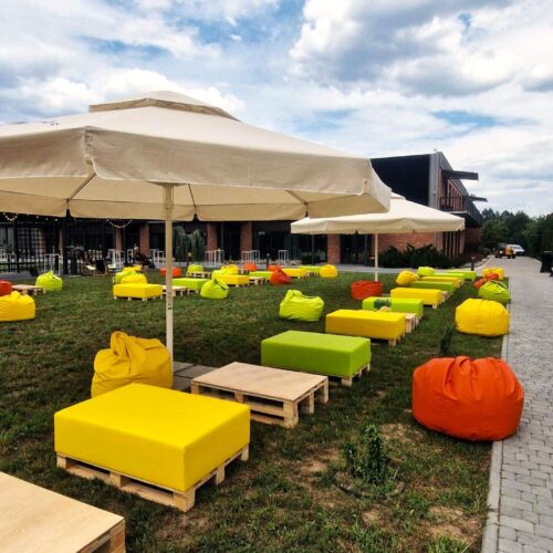Elegancka i nowoczesna pufa paletowa w intensywnym niebieskim kolorze, wykonana z ekoskóry i naturalnego drewna. Wymiary: wysokość 44 cm, szerokość 120 cm, głębokość 80 cm. Dostępna w ilości 12 sztuk. Przeznaczona do użytku wewnątrz i na zewnątrz. Doskonała na przyjęcia, eventy, konferencje, festiwale i spotkania integracyjne. Możliwość łączenia z innymi meblami i namiotami STAR. Wynajem z transportem.