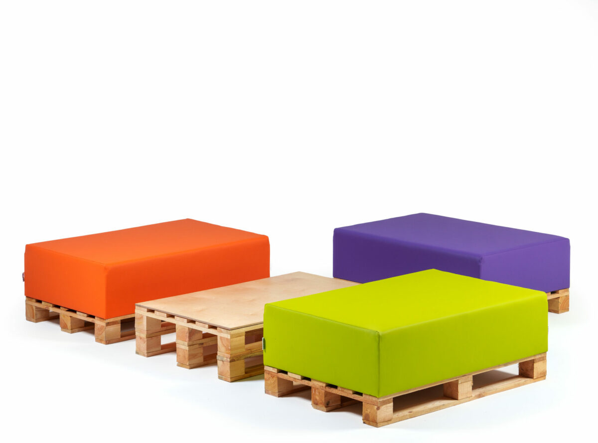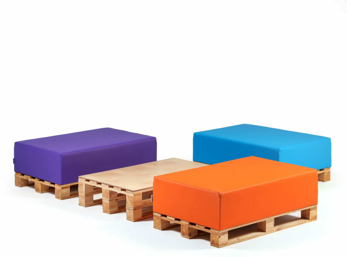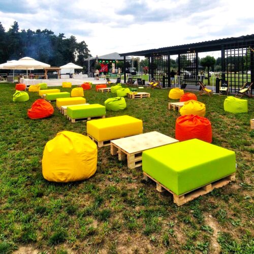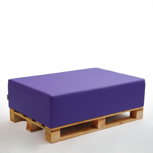 Fioletowa pufa paletowa wykonana z ekoskóry thick i naturalnego drewna, o wymiarach: wysokość 44 cm, szerokość 120 cm, głębokość 80 cm. Idealna na koncerty, imprezy tematyczne, wieczory panieńskie i kreatywne eventy. Dostępna w 12 sztukach z opcją wynajmu z transportem.