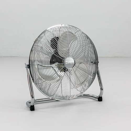 Profesjonalny cyrkulator powietrza z metalowym śmigłem i chromowaną obudową, zapewniający skuteczną cyrkulację powietrza na eventach, w studiach fotograficznych, planach filmowych czy garderobach. Stabilna podstawa z antypoślizgowymi nóżkami, regulowany kąt nachylenia, wbudowany uchwyt do przenoszenia. Moc: 100 W, napięcie 220-240 V, 3 prędkości nawiewu.