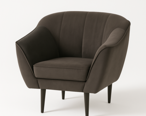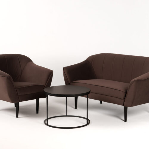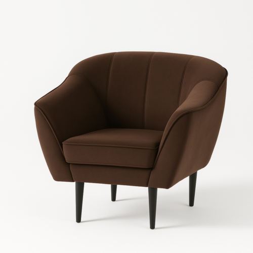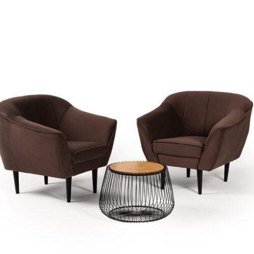 Fotel Como Bronze wykonany z miękkiej welurowej tkaniny w ciepłym brązowym odcieniu, z czarnymi drewnianymi nóżkami. Wymiary: wysokość 75 cm, szerokość 80 cm, głębokość 74 cm. Idealny na eventy, spotkania biznesowe, wesela w stylu rustykalnym i boho. Dostępność: 20 sztuk. Wynajem wyłącznie z transportem.