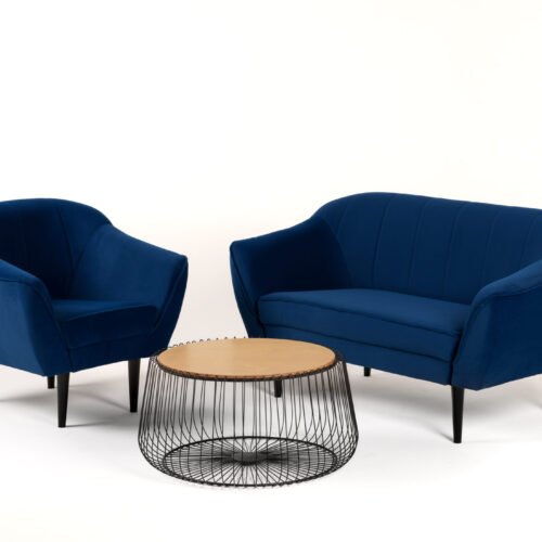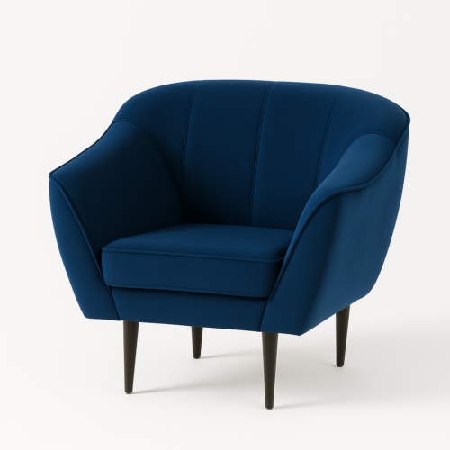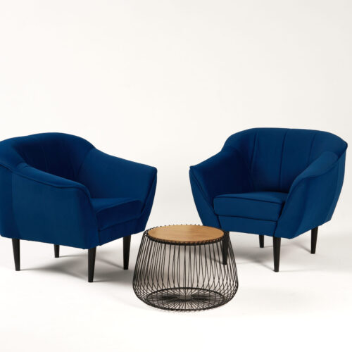 Fotel wykonany z miękkiej welurowej tkaniny premium w głębokim granatowym odcieniu, z czarnymi drewnianymi nóżkami. Komfortowy i elegancki, idealny na konferencje, bankiety, wesela i eventy firmowe. Minimalistyczny design pasujący do aranżacji klasycznych, glamour i loftowych. Wymiary: Wysokość: 75 cm, Szerokość: 80 cm, Głębokość: 74 cm. Dostępność: 20 sztuk. Wynajem realizowany z transportem firmy.