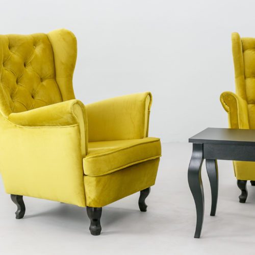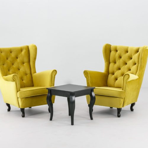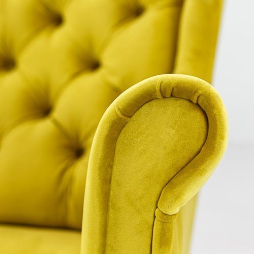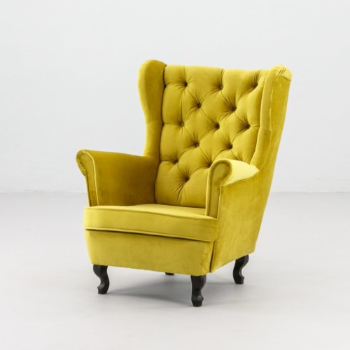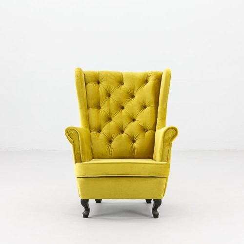 Klasyczny fotel Hampton Gold w luksusowym, żółtym odcieniu złota z tkaniny premium. Wysokie podłokietniki i pikowane oparcie z dekoracyjnymi guzikami. Idealny na eventy premium i eleganckie przyjęcia. Wymiary: głębokość 85 cm, szerokość 75 cm, wysokość 104 cm. Dostępnych 6 sztuk.