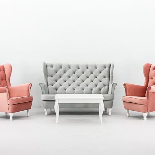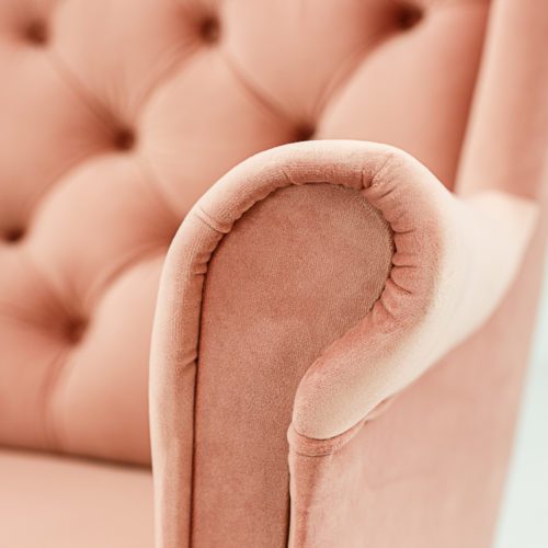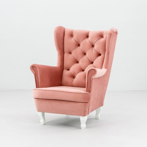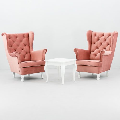 Fotel Hampton Powder Pink to elegancki i wygodny mebel idealny na prestiżowe eventy, bankiety i eleganckie strefy wypoczynkowe. Posiada klasyczną formę z wysokim pikowanym oparciem i szerokimi podłokietnikami. Obicie wykonane z tkaniny premium o aksamitnej strukturze i pięknym pudrowym różu. Dostępne profilowane nóżki w kolorze białym lub czarnym. Idealny do uzupełnienia sofy Hampton w tym samym odcieniu. Wynajem realizowany wyłącznie z transportem.