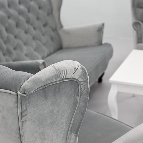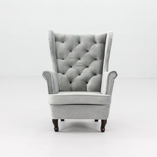 Elegancki fotel Hampton Silver z aksamitną, jasnoszarą tapicerką premium, głębokim pikowaniem, profilowanym oparciem i wysokimi podłokietnikami, idealny na eventy, bankiety i strefy VIP. Dostępny z czarnymi lub białymi nóżkami, do użytku wewnątrz. Wymiary: głębokość 85 cm, szerokość 75 cm, wysokość 104 cm. Dostępnych 10 sztuk. Wynajem realizowany z transportem.