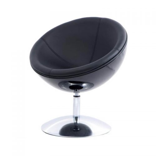 Fotel kulisty w nowoczesnej formie, na chromowanej, obrotowej podstawie talerzowej. Materiał: eko-skóra, włókno szklane, stal chromowana. Wymiary: wysokość 75 cm, szerokość 69 cm, głębokość 60 cm. Przeznaczony do użytku wewnątrz. Idealny na panele dyskusyjne lub scenę.