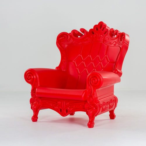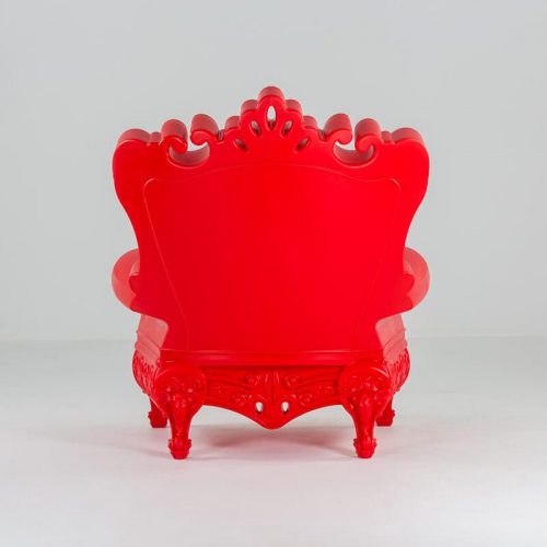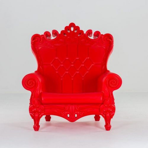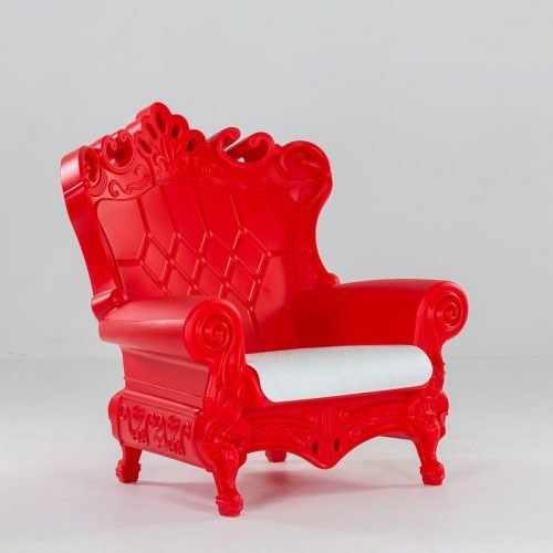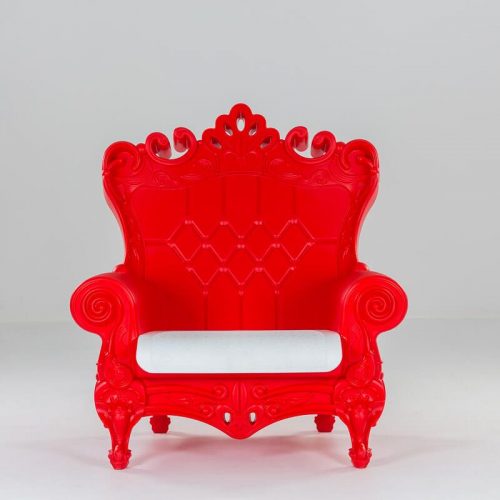 Wielki, piękny, wyjątkowy, imponujący – fotel THRONE. Wyposażony w miękką poduszkę koloru białego. Wymiary: Szerokość 103,4 cm, Głębokość 98 cm, Wysokość 112,5 cm, Wysokość siedziska 40 cm. Kolor: Czerwony. Wykończenie: Polietylen. Zastosowanie: wewnątrz, na zewnątrz.