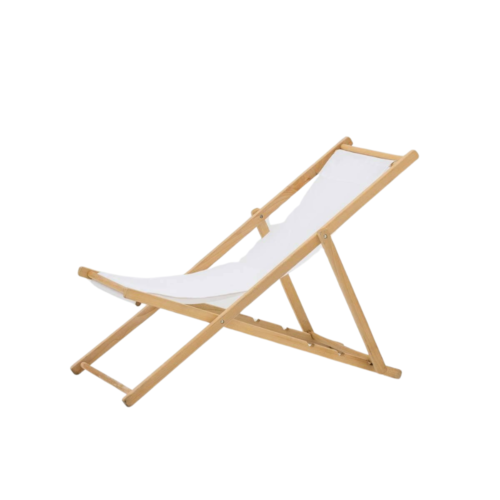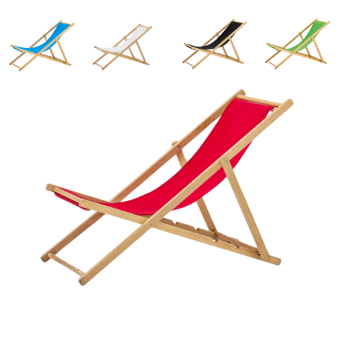 Leżak z naturalnego drewna dostępny w kolorze białym, niebieskim, czerwonym, zielonym oraz czarnym. Wymiary: długość 127 cm, szerokość 54 cm. Lite drewno bukowe, poliester. Składany, lekki i łatwy do przenoszenia, idealny na pikniki, festiwale, koncerty, eventy firmowe czy imprezy towarzyskie.