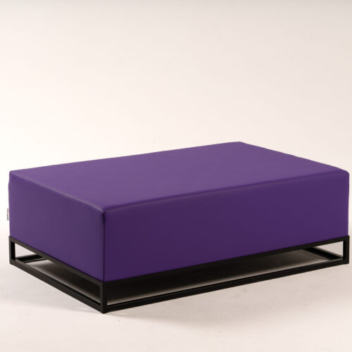 Pufa Loft Purple, fioletowa i czarna, wymiary: Wysokość 44 cm, Szerokość 120 cm, Głębokość 80 cm. Wykończenie z ekoskóry thick i stali malowanej proszkowo. Do użytku wewnątrz i na zewnątrz. Dostępnych 12 sztuk. Minimalistyczny, nowoczesny design idealny na wesela, gale, konferencje, eventy tematyczne i sesje zdjęciowe.