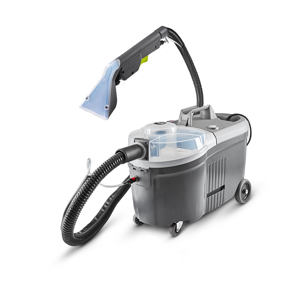 Wynajem odkurzacza piorącego do prania małych powierzchni: do prania tapicerki, kanap, sof, krzeseł, małych dywaników. Wyposażony w małą ssawkę piorącą, zbiornik na wodę 9 l, waga 8,5 kg, ciśnienie spryskiwania 1,7 bar.