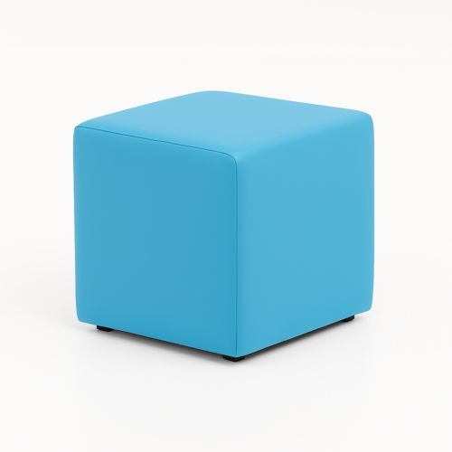 Nowoczesny mebel o wymiarach 40x40x40 cm, w niebieskim kolorze, wykonany z ekoskóry thick. Nadaje się do użytku wewnątrz i na zewnątrz. Idealny na konferencje, eventy, strefy relaksu oraz imprezy plenerowe. Wypożyczenie realizowane wyłącznie z transportem.