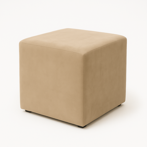 Pufa welurowa w beżowym kolorze, wymiary 45x45x45 cm, tkanina premium, do użytku wewnętrznego. Idealna do eleganckich przestrzeni eventowych, konferencji, bankietów, targów oraz stref VIP. Wynajem wyłącznie z transportem Eventomat.