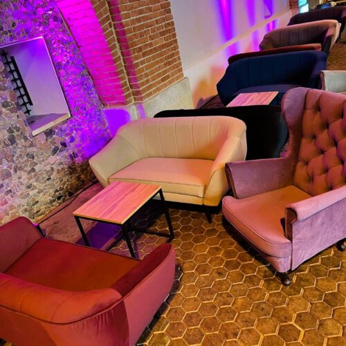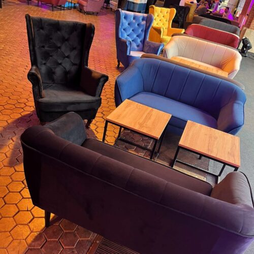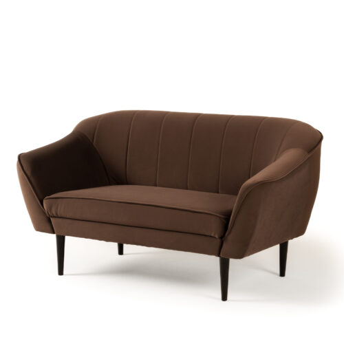 Dwumiejscowa sofa wykonana z wysokiej jakości welurowej tkaniny premium w kolorze brązowym. Wymiary: wysokość 75 cm, szerokość 140 cm, głębokość 74 cm. Przeznaczona do użytku wewnętrznego, idealna na eventy w stylu boho, rustykalnym oraz kameralne spotkania biznesowe. Dostępna w 10 sztukach. Wynajem z transportem.