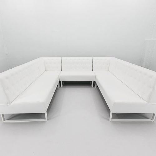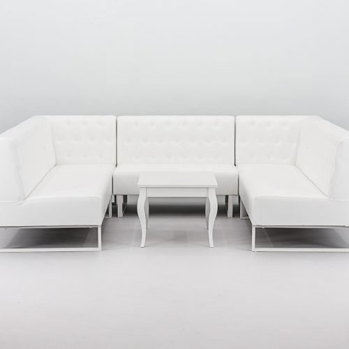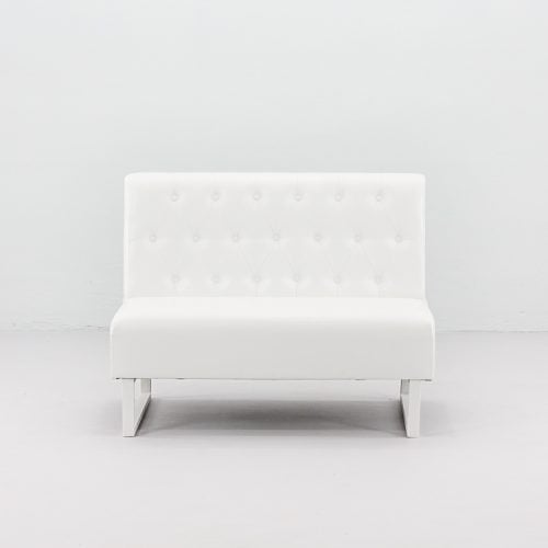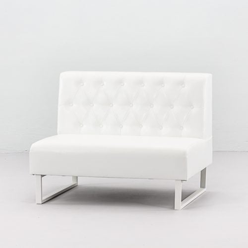 Sofa GLAMOUR DUO WHITE to dwuosobowa sofa pikowana z eko-skóry premium, idealna do stref VIP, loży klubowych, przestrzeni lounge oraz eleganckich eventów biznesowych i bankietów. Wymiary: wysokość 85 cm, szerokość 110 cm, głębokość 80 cm. Kolor biały. Dostępna jest wyłącznie z usługą transportu.