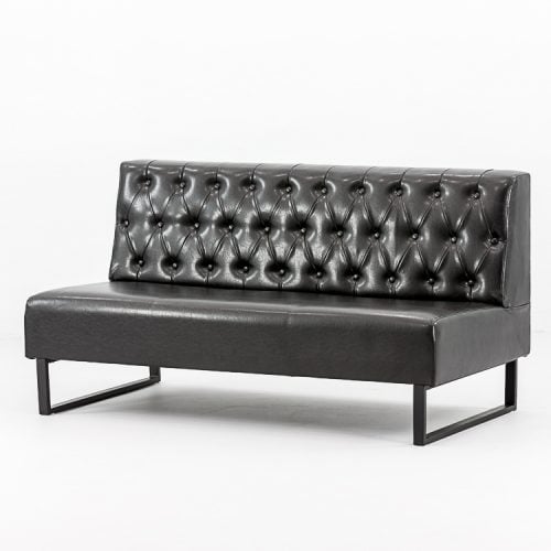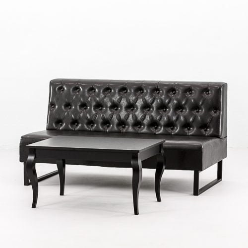 Trzyosobowa sofa z pikowanym oparciem w stylu Chesterfield, wykonana z ekologicznej skóry premium w kolorze czarnym. Luksusowa i elegancka, idealna do stref VIP, loży i przestrzeni lounge na eventach premium. Wymiary: 85 cm wysokości, 160 cm szerokości, 80 cm głębokości. Dostępna w wersji dwuosobowej oraz narożnej. Wynajem realizowany z usługą transportu.