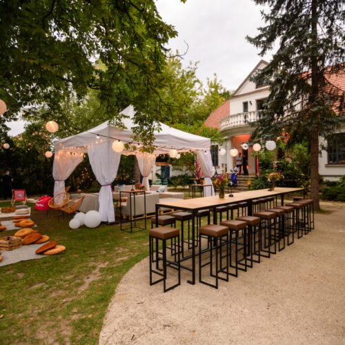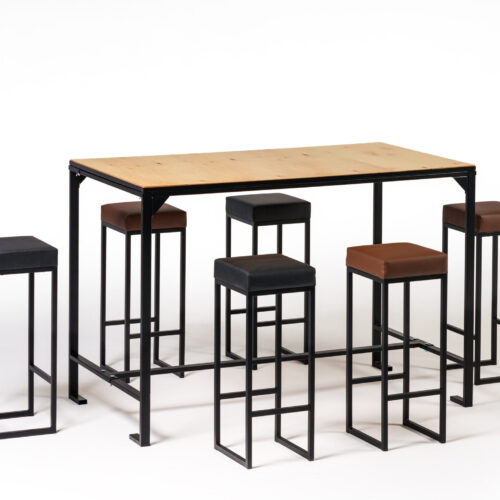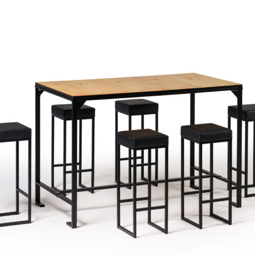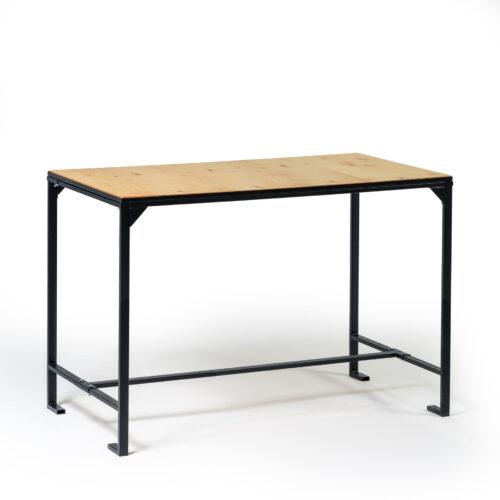 Stół koktajlowy o wymiarach 107x160x80 cm, wykonany ze stali malowanej proszkowo z wodoodpornym blatem ze sklejki lakierowanej. Przeznaczony do użytku wewnątrz i na zewnątrz, dostępny w kolorze czarnym i naturalnym. Idealny na eventy plenerowe, festiwale i imprezy firmowe.