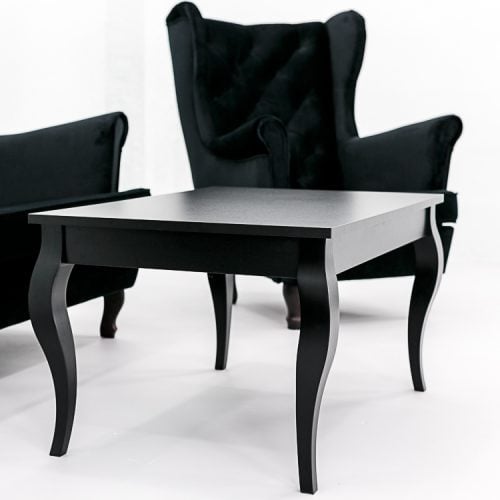Bardzo elegancki stolik w stylu klasycznym z subtelnie wyprofilowanymi nogami z litego drewna. Wykonany z drewna naturalnego i płyty MDF. Wymiary: głębokość 90 cm, szerokość 60 cm, wysokość 55 cm. Oferowany wyłącznie z usługą transportu.