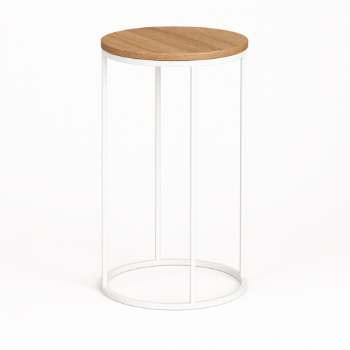 Elegancki stolik eventowy o lekkiej, nowoczesnej formie. Okrągły blat z naturalnego drewna na białym metalowym stelażu. Wymiary: Średnica 60 cm, Wysokość 110 cm. Dostępność 40 szt. Wykończenie: Stal malowana proszkowo, płyta meblowa. Zastosowanie: Wewnątrz. Idealny na bankiety, koktajle, garden party i eventy promocyjne.