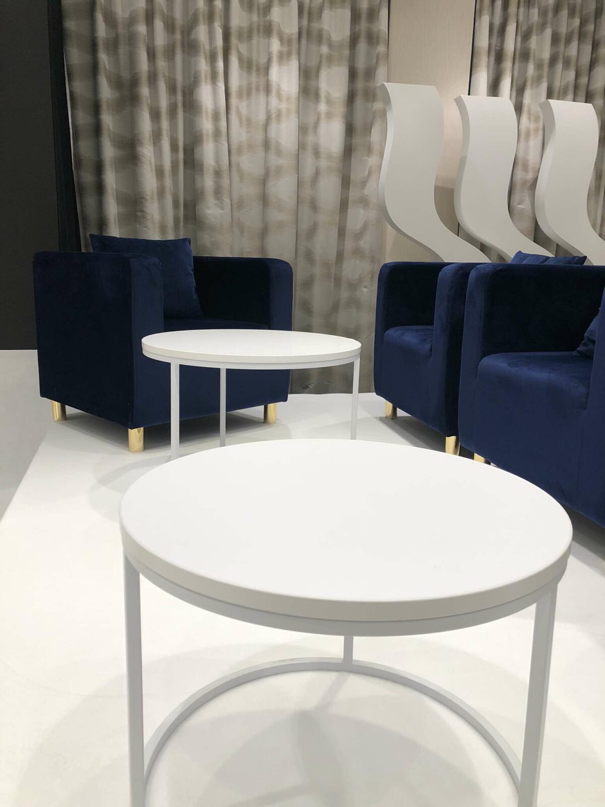 Okrągłe stoliki eventowe Roundi White dostępne w dwóch rozmiarach S (Średnica: 50 cm, Wysokość: 38 cm) i M (Średnica: 60 cm, Wysokość: 43 cm). Wykonane z malowanej proszkowo stali i płyty meblowej. Idealne do wnętrz, na konferencje, bankiety, wesela i przyjęcia firmowe. Cena obejmuje wynajem jednego stolika w rozmiarze S lub M, z transportem i dostawą na terenie Warszawy.